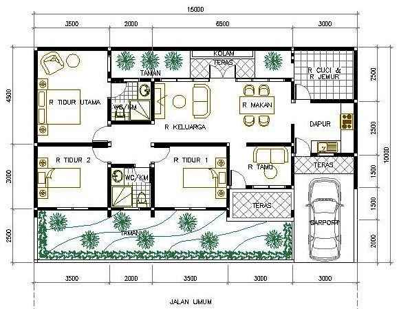 Denah rumah sederhana 1 lantai 3 kamar tidur memberikan kenyamanan dan hemat dari segi kantong.