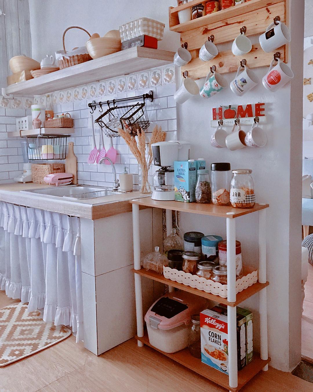 Sementara di sisi kanannya terdapat tempat bagi lemari es dan tempat oven.