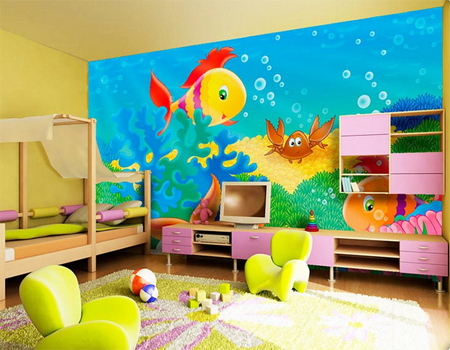 Desain Kamar Tidur Anak Berdua Berikan wallpaper pada dinding kamar tidur anda. Agar konsep desain kamar tidur ini tetap dapat mewakilkan kepribadian mereka, kamu bisa memainkan perpaduan warna cat pada kamar tidur agar ciri khas tiap anak tetap terlihat. Nah, untuk dua anak gadis, anda bisa menerapkan. Hal ini sangat cocok bagi anda yang memiliki ruang yang sangat minim.