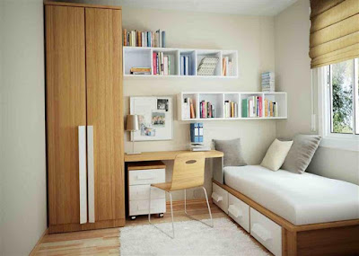 Desain Ruang Kerja Dalam Kamar Tidur Desain minimalis dengan fungsi maksimalis: Contohnya adalah menjadikan kamar tidur sekaligus sebagai ruang kerja. Solusi lain adalah membuat ambalan kayu menempel dinding yang dijadikan meja kerja. Dalam sebuah rumah, kamar tidur merupakan area privat yang digunakan sebagai tempat beristirahat setelah seharian beraktivitas di luar rumah.